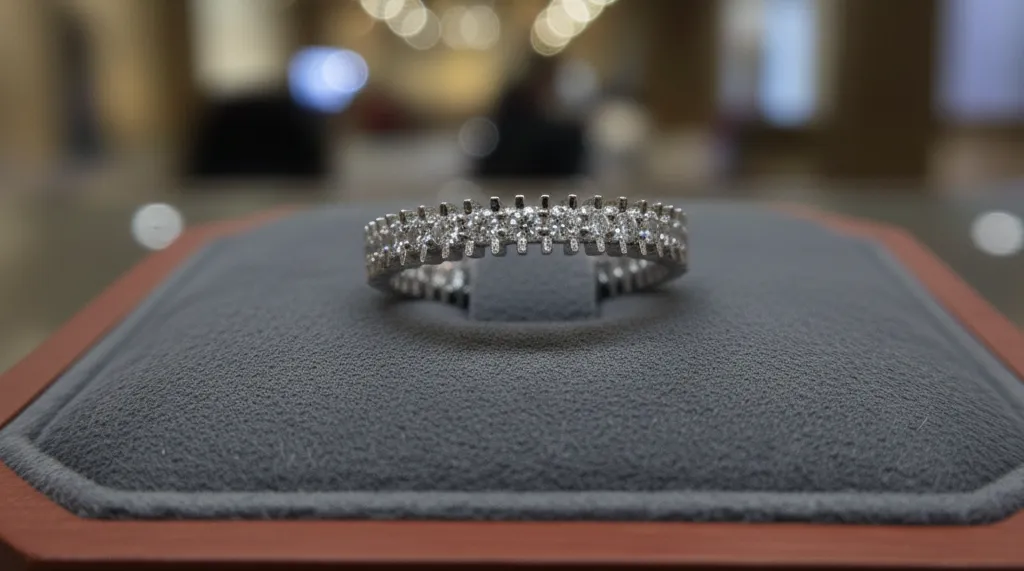 Hãy ưu tiên kiểu chấu bao quanh (Bezel) hoặc chấu rãnh (Channel). Những kiểu chấu này ôm sát vào thân nhẫn, giảm thiểu rủi ro va đập và vướng víu vào dụng cụ thể thao hay quần áo.