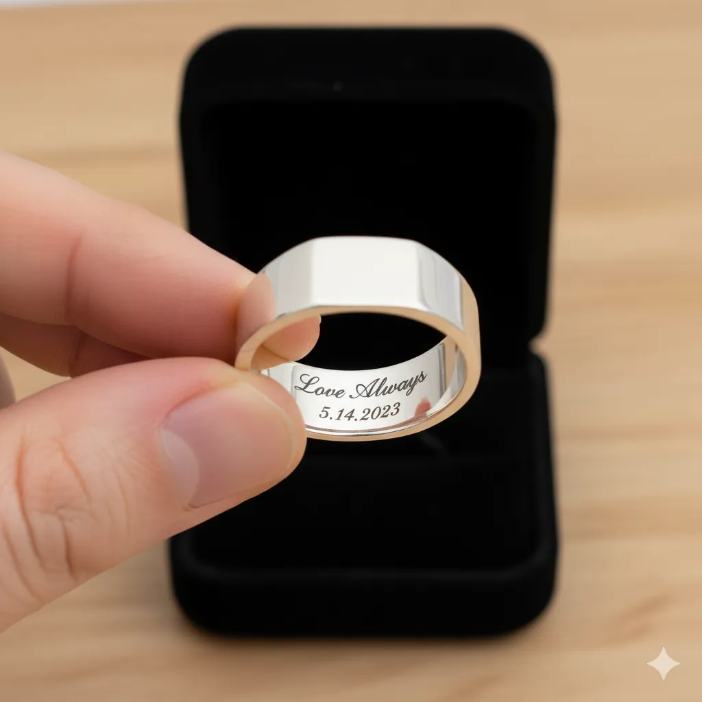 - Đúng chính tả và con số: Kiểm tra kỹ từng ký tự tên và con số ngày cưới. Việc sửa chữa khắc Laser sau khi đã hoàn thiện sẽ làm mỏng lòng nhẫn.