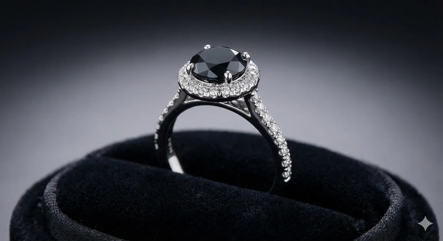 - Hiệu ứng thị giác: Khi viên kim cương đen được đặt trên nền vàng đen, chiếc nhẫn tạo ra một vẻ ngoài "Tone-sur-Tone" vô cùng quyền lực, mang hơi hướng tương lai (futuristic).