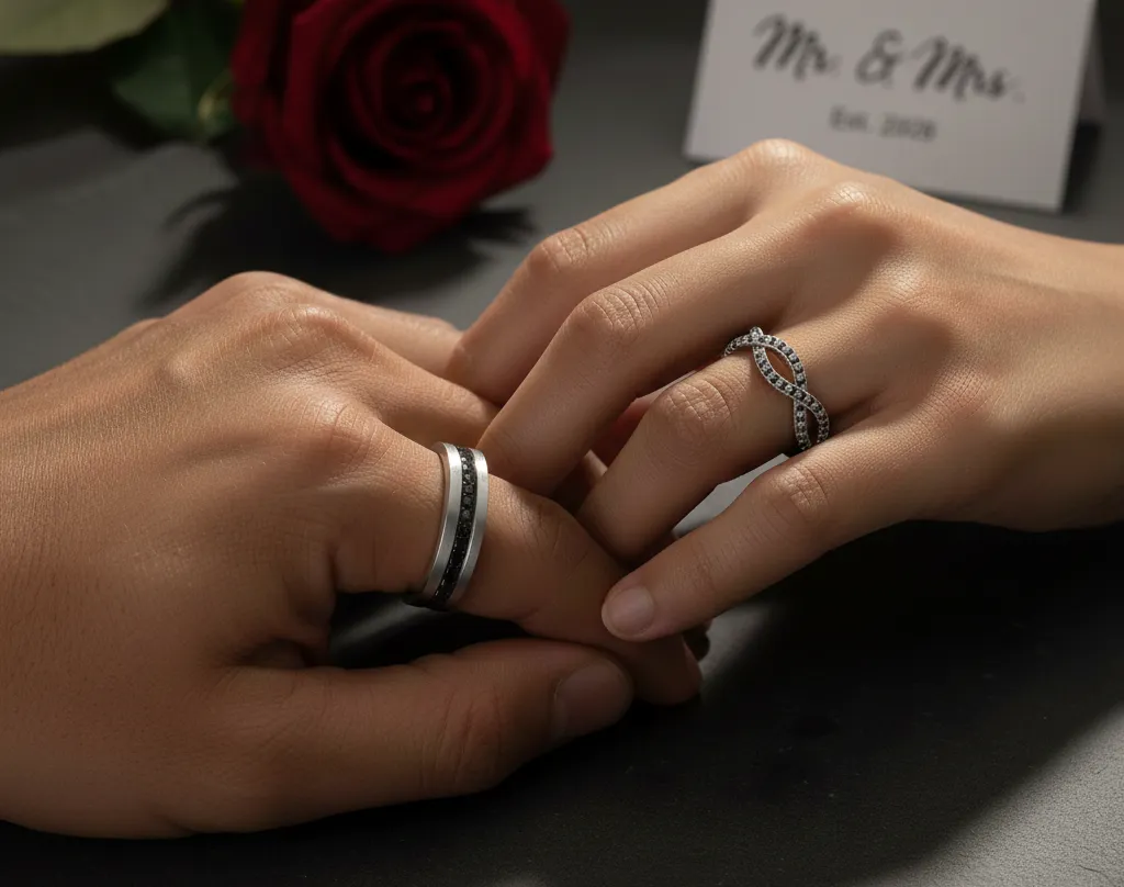 Bạn đang tìm kiếm một cặp nhẫn cưới phá cách, thoát khỏi những quy chuẩn truyền thống với kim cương trắng hay vàng vàng quen thuộc? Bạn lo lắng liệu một viên đá màu đen có làm mất đi vẻ trang trọng của ngày cưới, hay nó có đủ bền bỉ để đại diện cho một tình yêu vĩnh cửu?