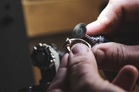 Platin rất "lì". Để đạt được độ bóng gương (Mirror finish) đặc trưng của dòng nhẫn cưới Platin cao cấp, nghệ nhân phải tốn thời gian gấp đôi so với vàng. Việc đánh bóng Platin không chỉ là mài mòn mà là kỹ thuật "miết" kim loại, đòi hỏi đôi tay cực kỳ khéo léo để không làm mất đi các đường nét tinh xảo của thiết kế.