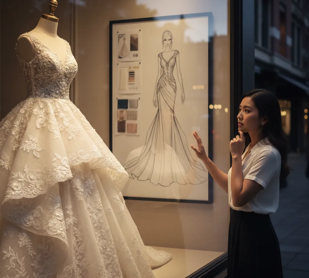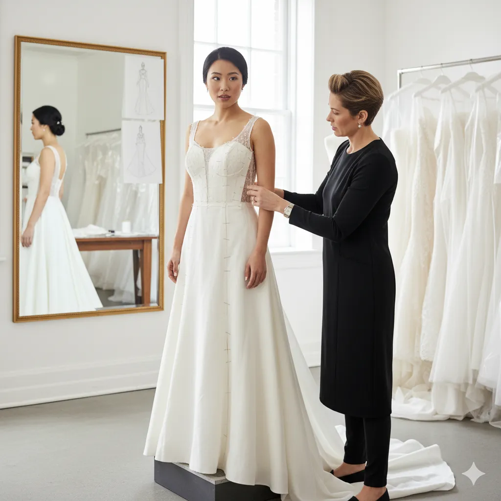 Thiết kế váy cưới riêng hay may đo váy cưới là quá trình tạo ra một chiếc váy độc quyền, hoàn toàn PHÙ HỢP với cơ thể, cá tính, và chủ đề tiệc cưới của cô dâu.