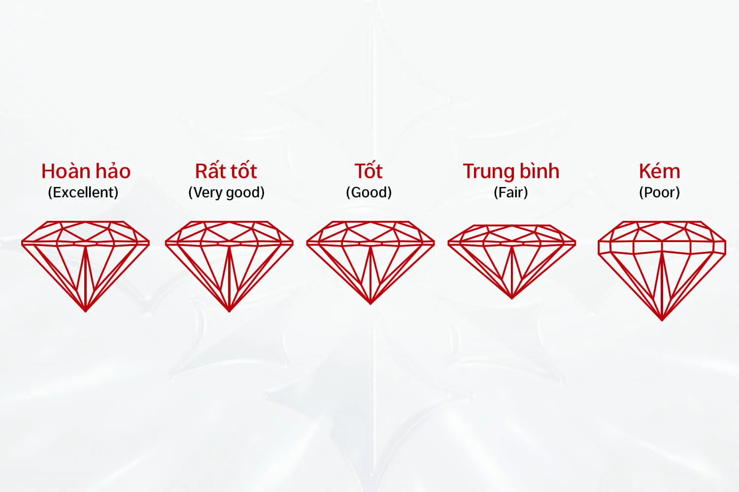 | Cut (Giác cắt) | Số 1 (Tối quan trọng) | Chọn "Excellent" | Tạo ra độ lấp lánh (lửa) tối đa |