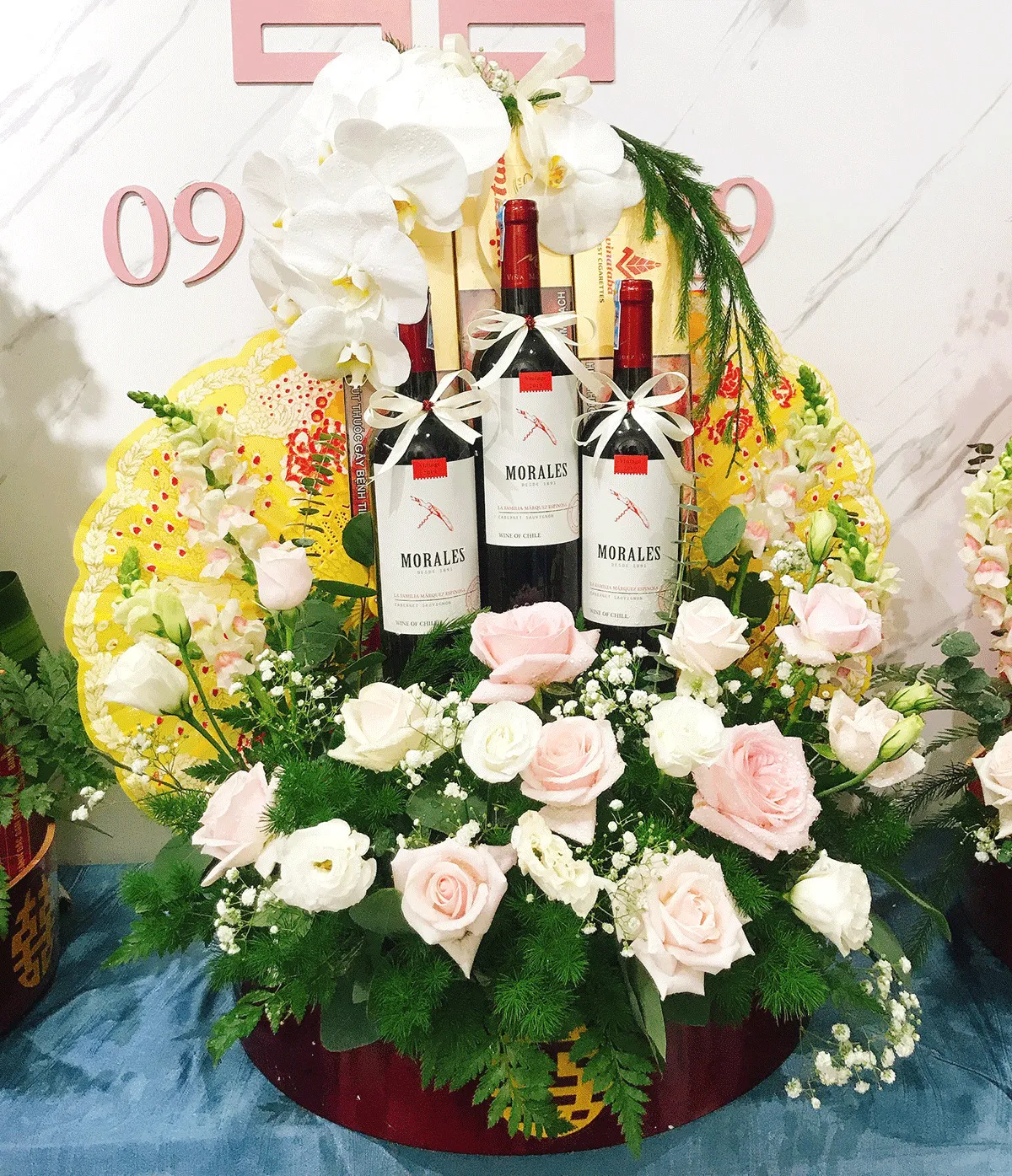 - Lễ vật: Gồm 3 chai rượu (thường là vang hoặc rượu ngoại cao cấp) và 3 cây thuốc lá.