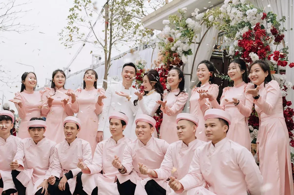 - Trang phục: Đội nam thường mặc áo dài truyền thống hoặc sơ mi trắng cà vạt. Đội nữ mặc áo dài đồng màu (tránh trùng màu với áo dài cô dâu).