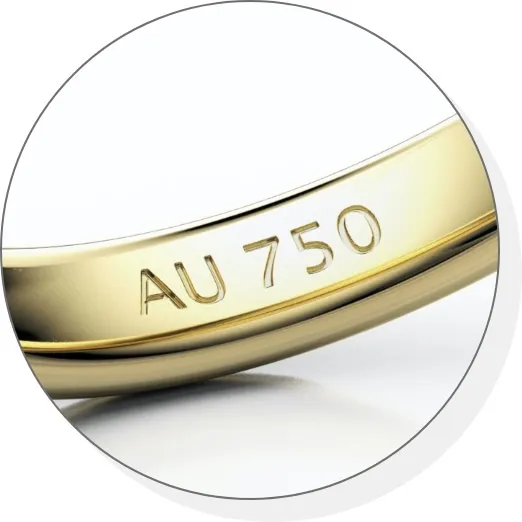 1. Kiểm tra Hallmark (Dấu đóng): Luôn tìm ký hiệu 750 (cho 18k) hoặc 585 (cho 14k) được khắc bằng laser sắc nét trong lòng nhẫn.