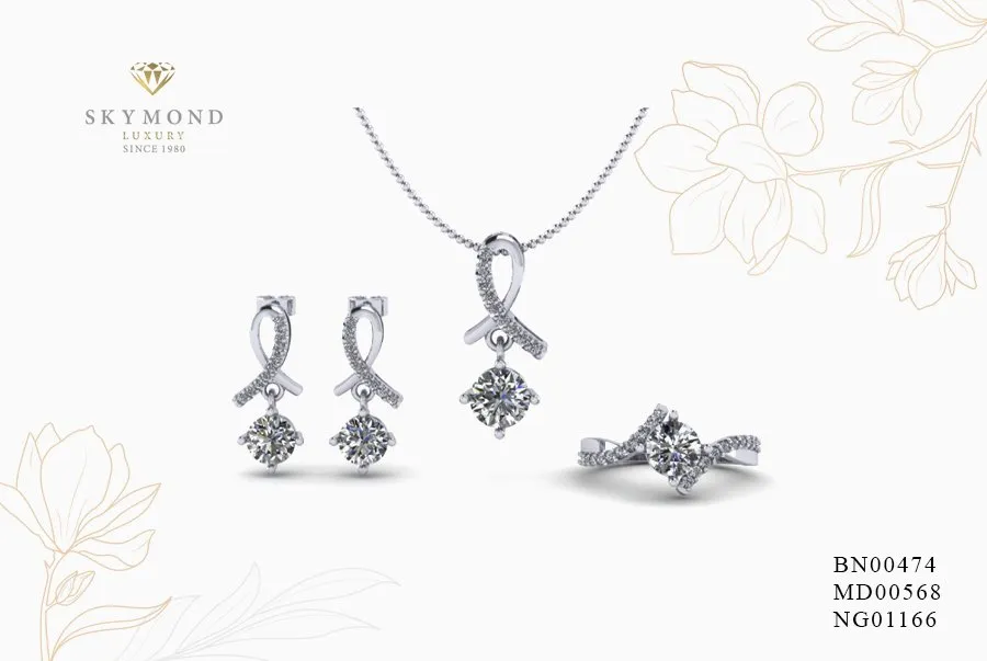 Các tín đồ trang sức yêu thích sự mới lạ và đẳng cấp có thể lựa chọn được những thiết kế Platin ưng ý tại Skymond Luxury – Hãng thiết kế trang sức Platin hàng đầu tại Việt Nam. Mỗi bộ trang sức Platin của Skymond Luxury đều là sự kết hợp giữa những viên Kim cương tự nhiên cùng chất liệu Platin tuyệt vời làm toát vẻ đẹp trang nhã, quý phái.
