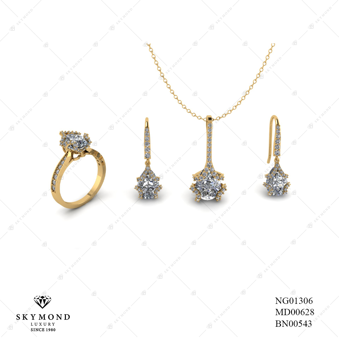 Dây chuyền MD00628, nhẫn nữ NG01306 của Skymond Luxury được làm từ chất liệu Vàng. Đặc biệt, thiết kế này được đánh giá cao bởi sự kết hợp Kim cương tinh tế, thanh lịch, trẻ trung - đúng với xu hướng chủ đạo của năm 2020. Với bộ trang sức này, phái đẹp sẽ thêm phần tự tin khẳng định gu thời trang độc đáo và cá tính riêng biệt của mình.
