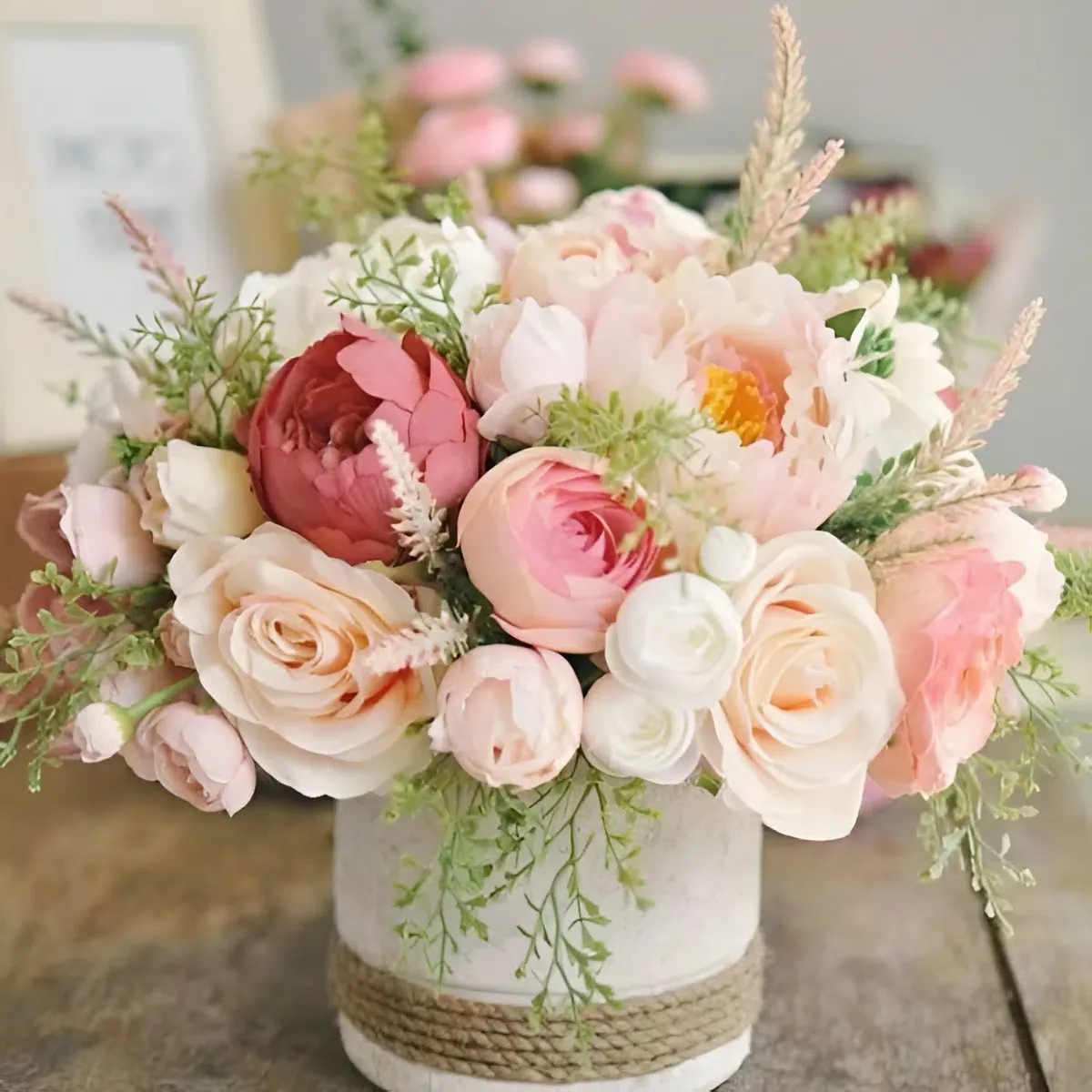 - Đặc điểm: Tập trung vào sự mộc mạc, gần gũi với thiên nhiên. Sử dụng nhiều cây lá, cành khô, và các loại hoa dại.