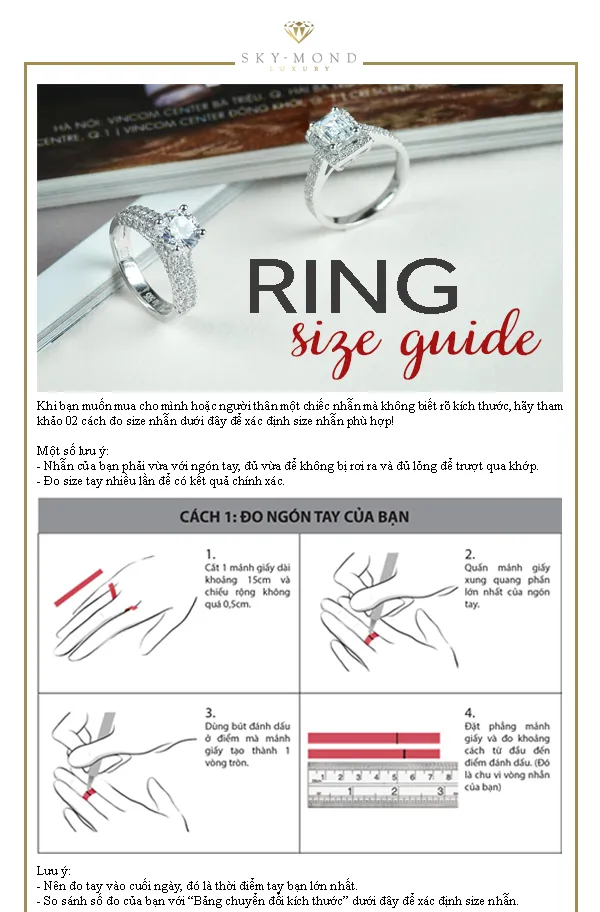 Skymond Luxury gợi ý 3 cách đơn giản và chính xác để bạn tìm ra size nhẫn cưới phù hợp nhất: