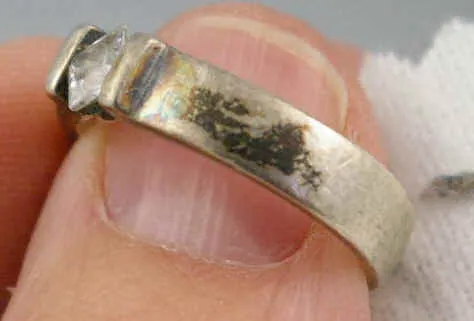 Bạc (Ag) là kim loại dễ bị phản ứng hóa học với các hợp chất chứa lưu huỳnh (S) có trong không khí hoặc trong mồ hôi người (tạo thành Ag - Bạc Sunfua). Hợp chất này có màu đen tuyền, bám chặt trên bề mặt trang sức, khiến trang sức bạc bị xỉn màu rất nhanh.