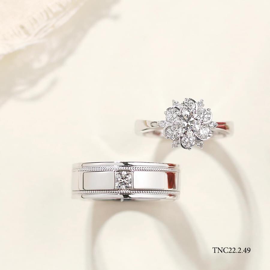 BST nhẫn cưới của Skymond Luxury chinh phục giới thượng lưu bởi kiểu dáng sang trọng, lộng lẫy được tạo nên từ hai chất liệu quý giá nhất hành tinh.