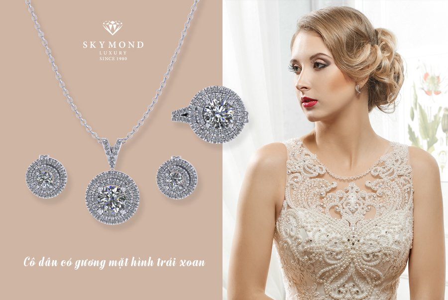 Nhiều người cho rằng gương mặt trái xoan là gương mặt rất dễ kết hợp nữ trang cưới. Đúng là sở hữu kiểu gương mặt này, bạn phù hợp với rất nhiều kiểu trang sức. Tuy nhiên, khi chọn trang sức cưới bạn cũng nên lưu ý chọn những loại vòng cổ bản to, ôm sát cổ nếu cổ bạn hơi dài. Ngược lại, nếu cổ hơi ngắn, bạn hãy chọn những vòng cổ có thiết kế hơi dài, mảnh.